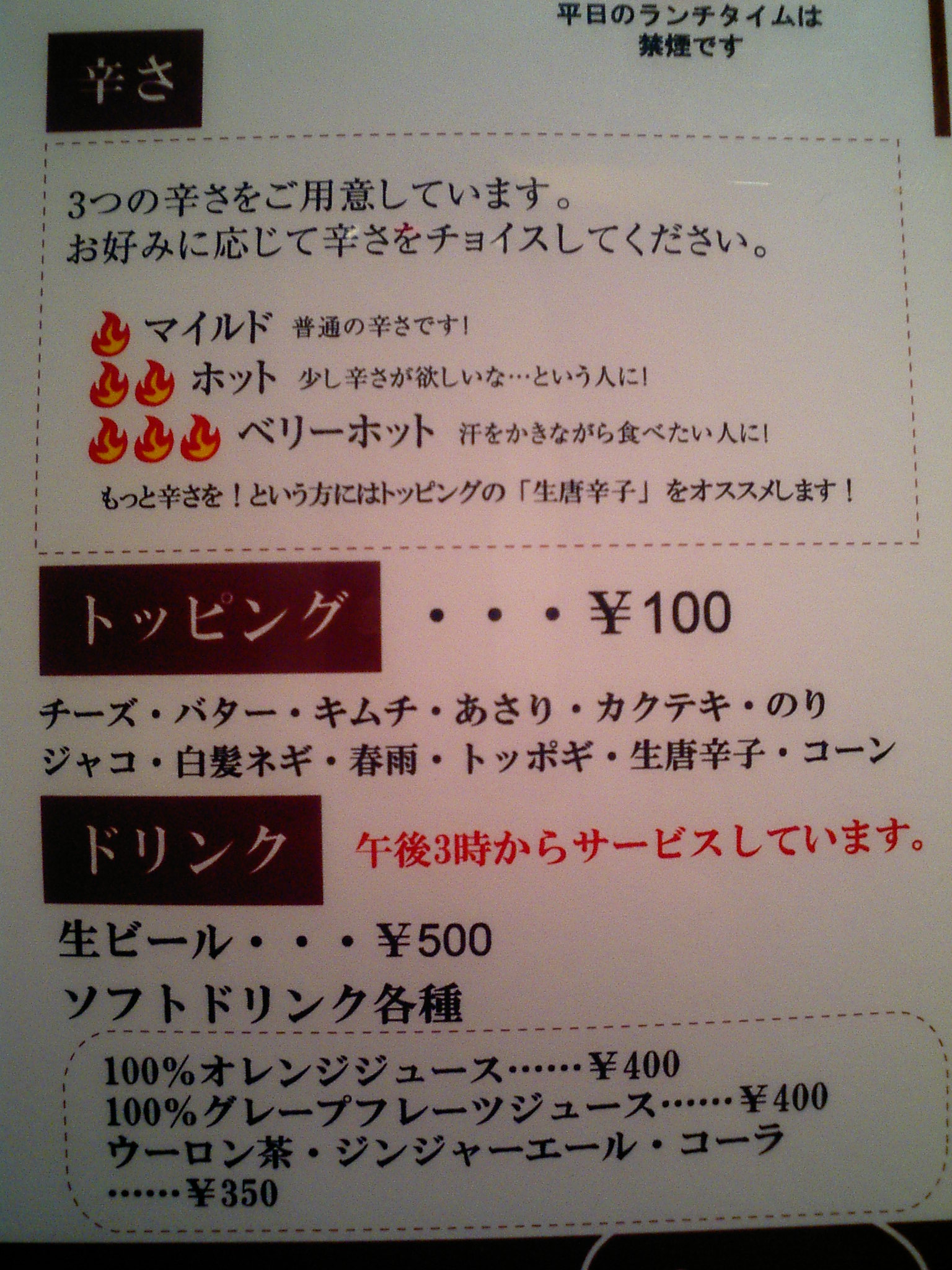 トッピングでユニークだなぁと思ったのが、チーズ。でも、バター入りが美味しかったから、チーズも、いいのかもなぁ。ボリューム志向の方は、春雨やトッポギもあるから、男性も満足しそう。