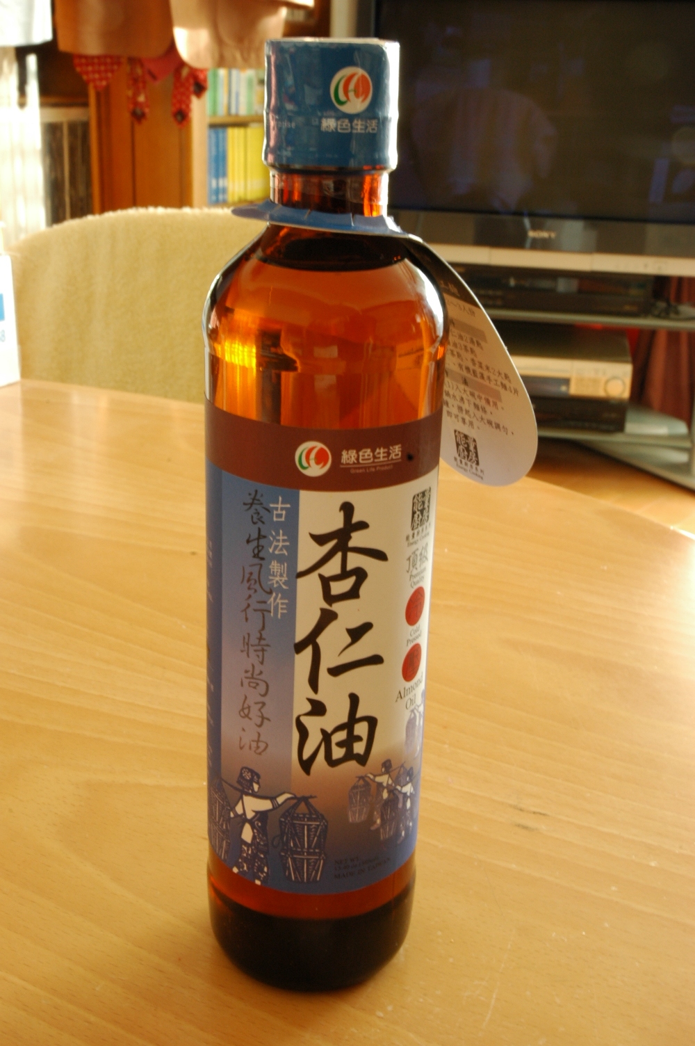 これ、すごい、杏仁(ビターアーモンド系)の香りした。ほんの少量で、杏仁の風味が楽しめます。アーモンドオイルの感覚で、にんじんサラダに使ってみました。他にも茶油とか、売られていました。日本だったらちょっと、珍しいけど、スーパーで、入手できますよ。