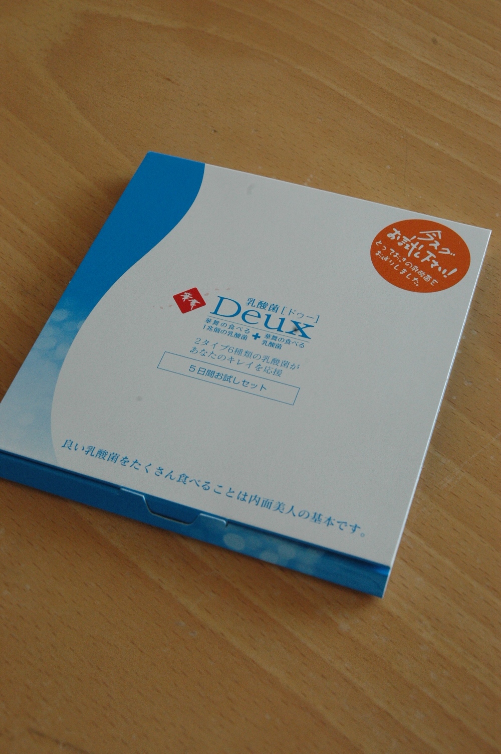 写真が到着した乳酸菌deux お試しセットです。