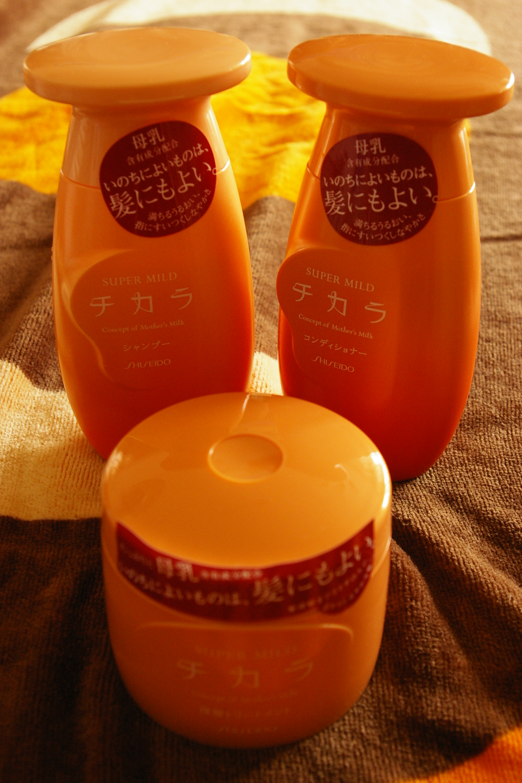 資生堂のチカラというシャンプー・リンス・トリートメントを使ってみました。「チカラシャンプー」「チカラコンディショナー」「チカラ深層トリートメント」の3点です。母乳含有成分配合というのが、面白いですね。