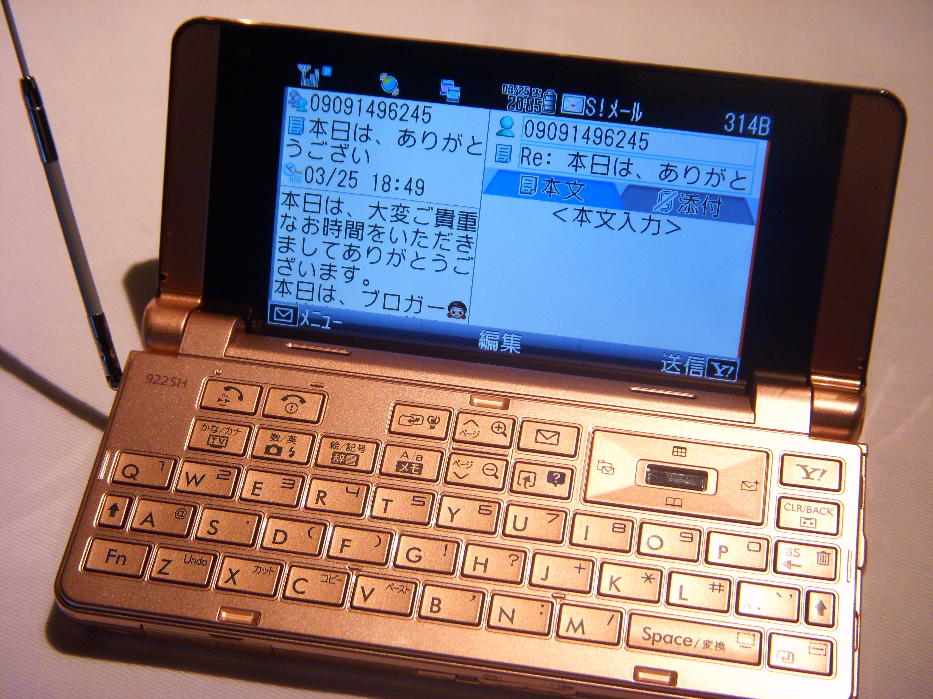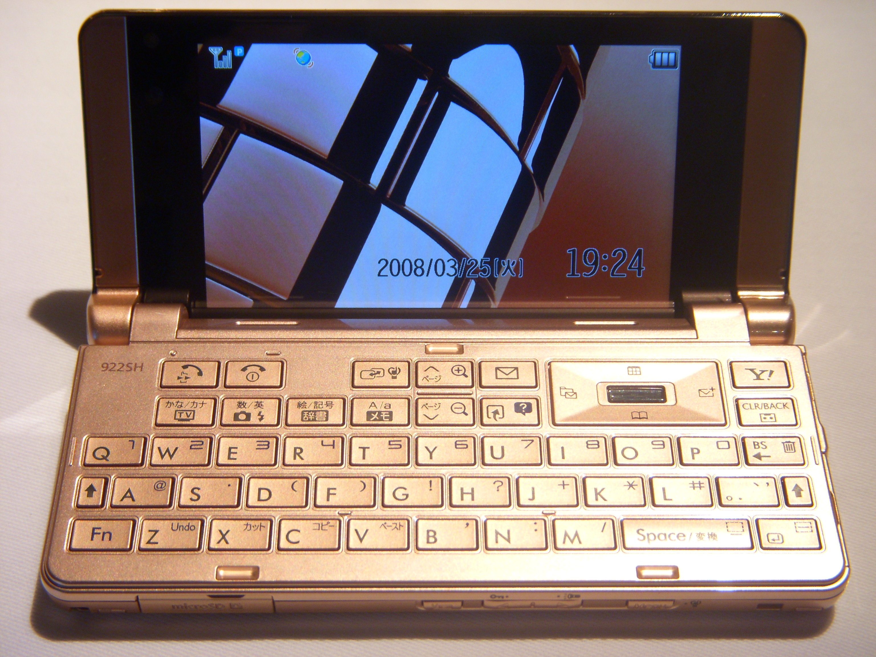 「インターネットマシン 922SH」は、横開きタイプ、QWERTY 配列のフルキーボードを搭載し、電子辞書やノート PC のような操作が可能。