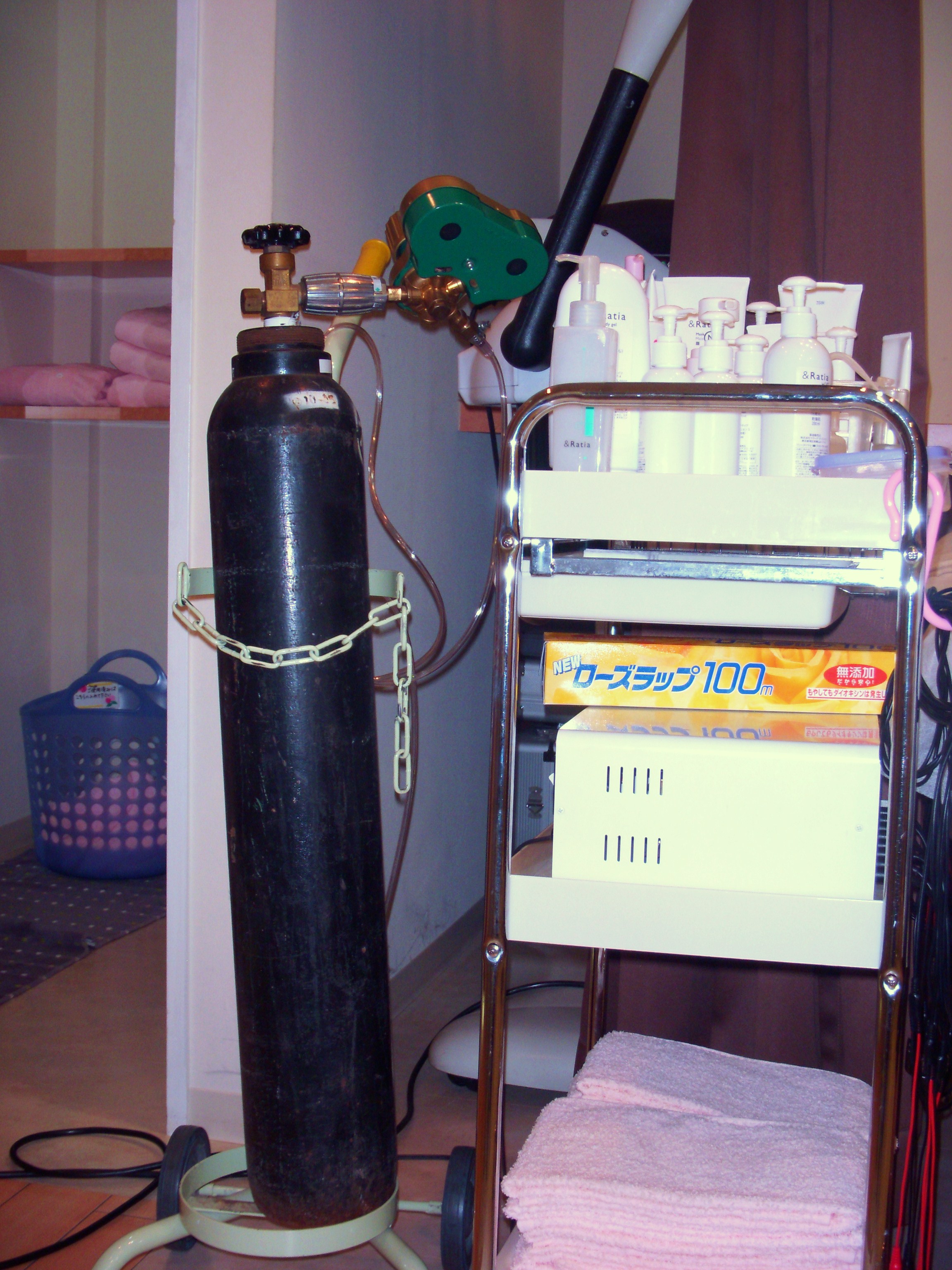 ボンベから酸素が出てくるらしい。しゅぅ~と、優しく肌に吹きつけてくれるんだけど、気持ちいい。
