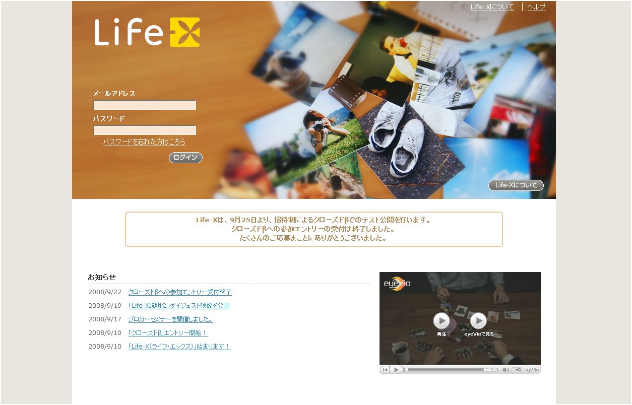 個人が日常の中で作り、集めたデジタルコンテンツをWebブラウザー上でまとめて管理できる、"ライフログ・シェアリングサービス"「Life-X(ライフ・エックス)」が10月中旬から、無料で、一般公開されます。