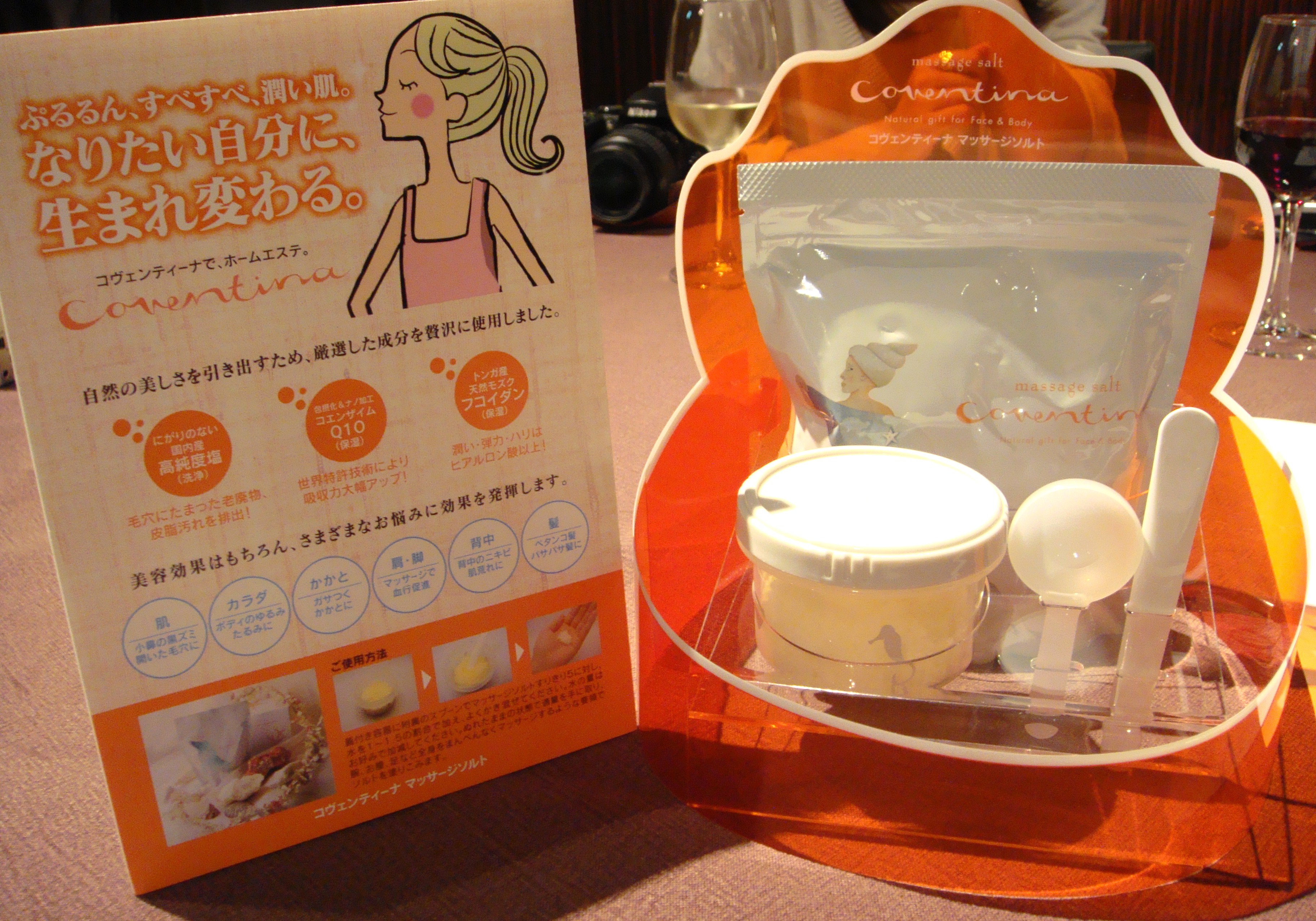 ソルト系のマッサージをお風呂で使って、それから、ボディケアをすると、美肌効果もあり、マッサージの効果も相乗効果がでるので、やってみたらいいですよ♪と、とにかく、無理なく、続けることを薦められました。スリミングやファーミング・セルライトに働きかける・・・などいろんなボディクリームが出ていますが、それは、どれを選んでも、さほど効果に変わりはないから・・・と、ソルト系のマッサージをお勧めされました。(その時の様子はこちらから)