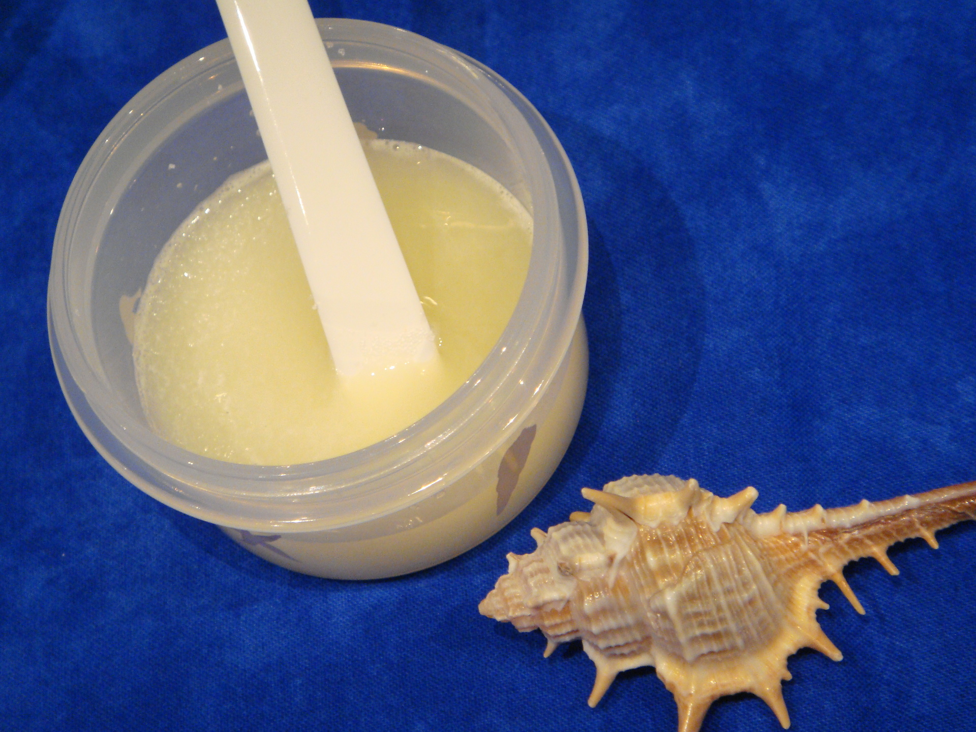 使うときは、水を加えてシャーベット状にします。優しく、なでるようにマッサージ。肌あたりが優しくて、ソルト系のスクラブではないみたいです。