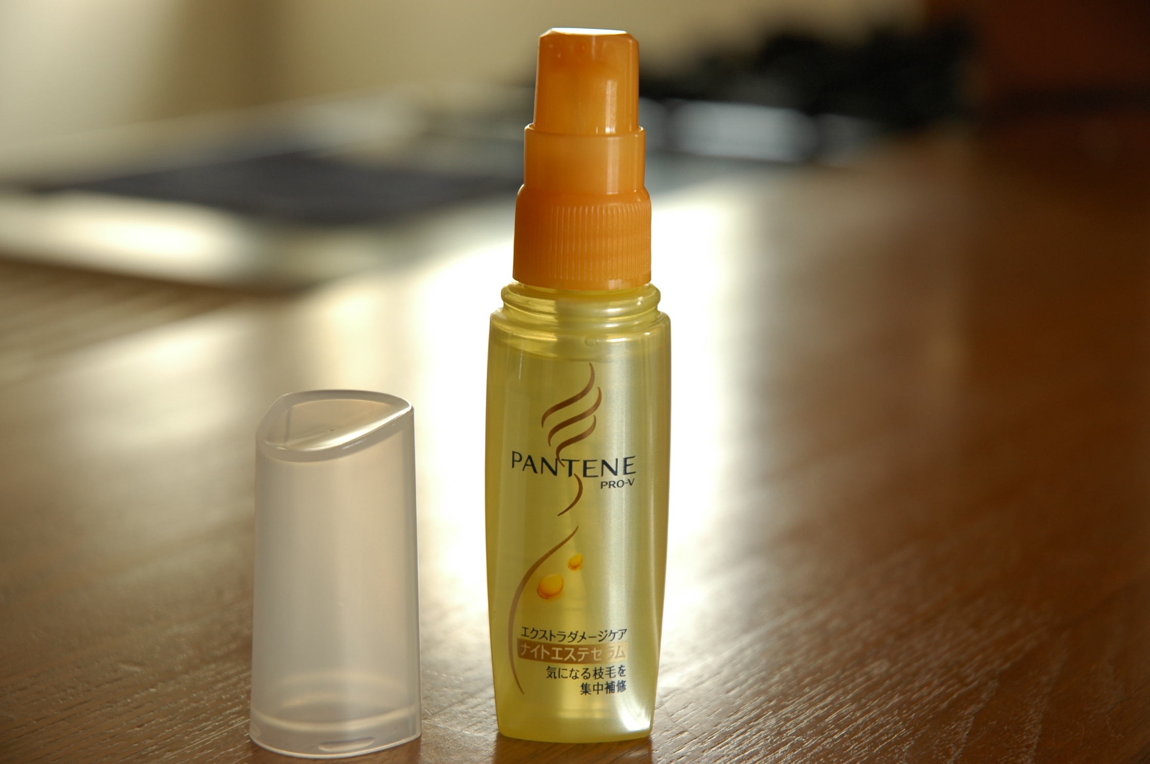 私、パンテーンを使うの初めてなんですけど、まず、香りに癒される。すごくいい香りです。容器も、なめらかに髪がながれるようなラインをイメージさせるデザインで、ちょっと、凝ってるんですよね。