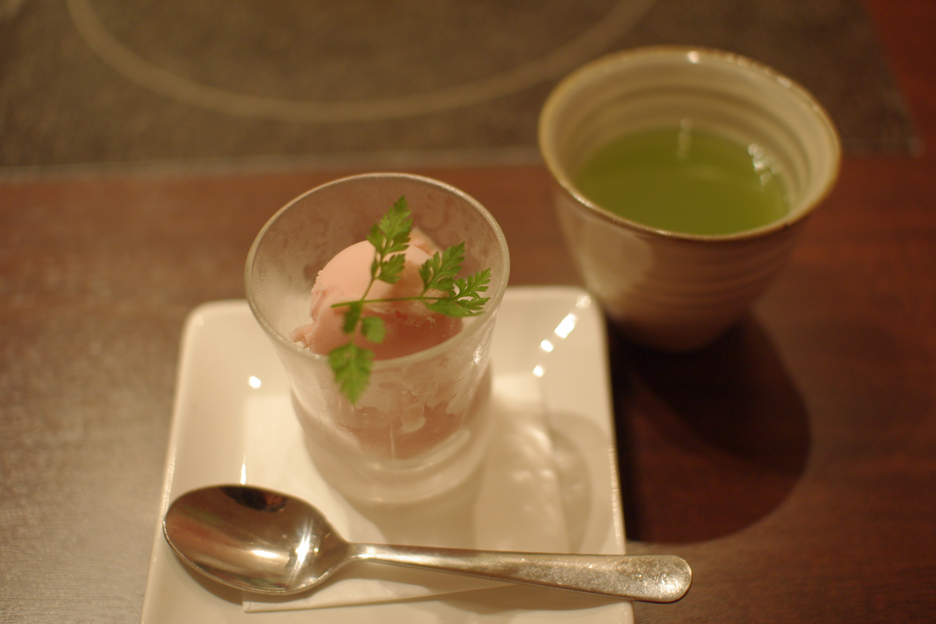 デザートは、アセロラのシャーベット。お茶も出してもらいました。