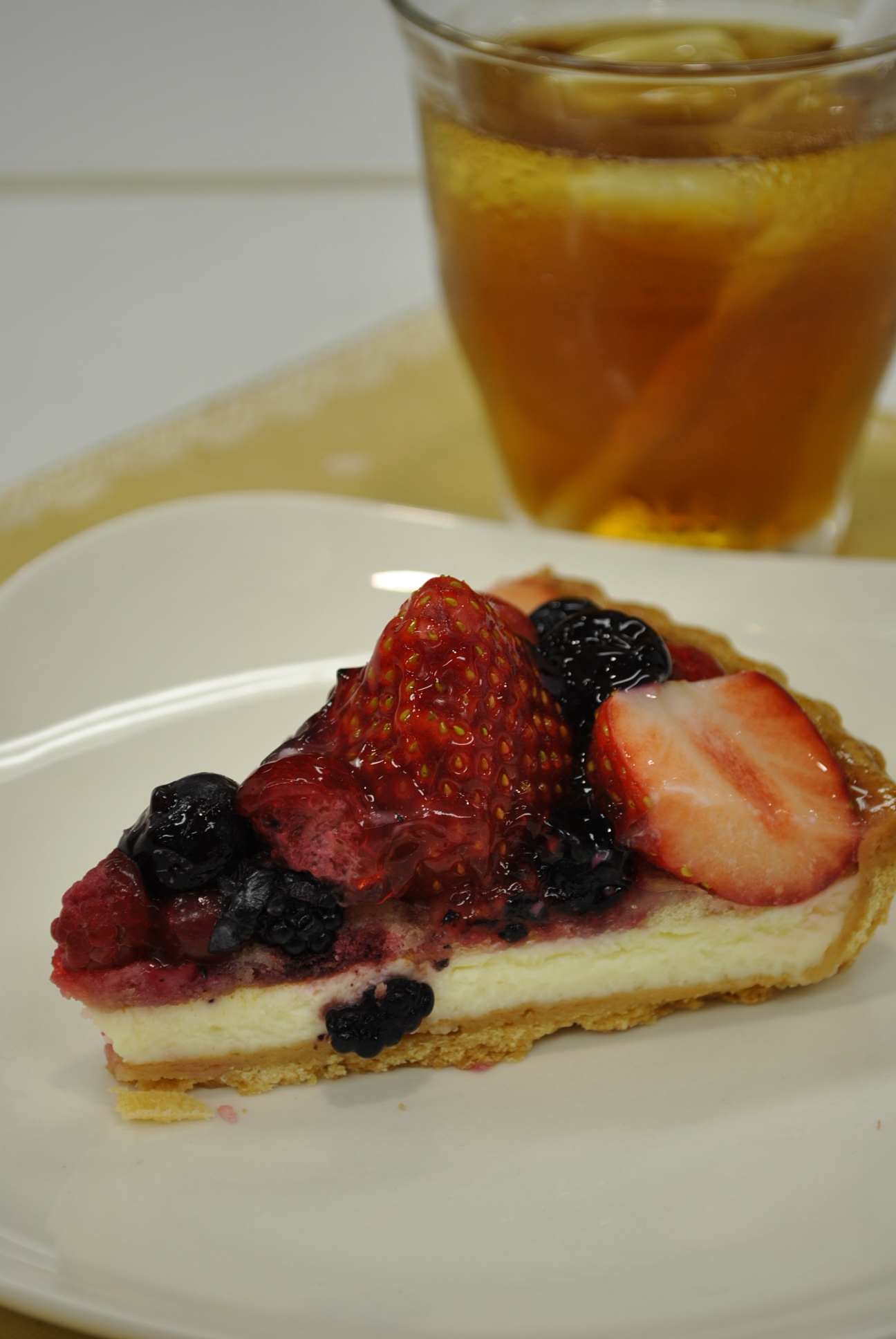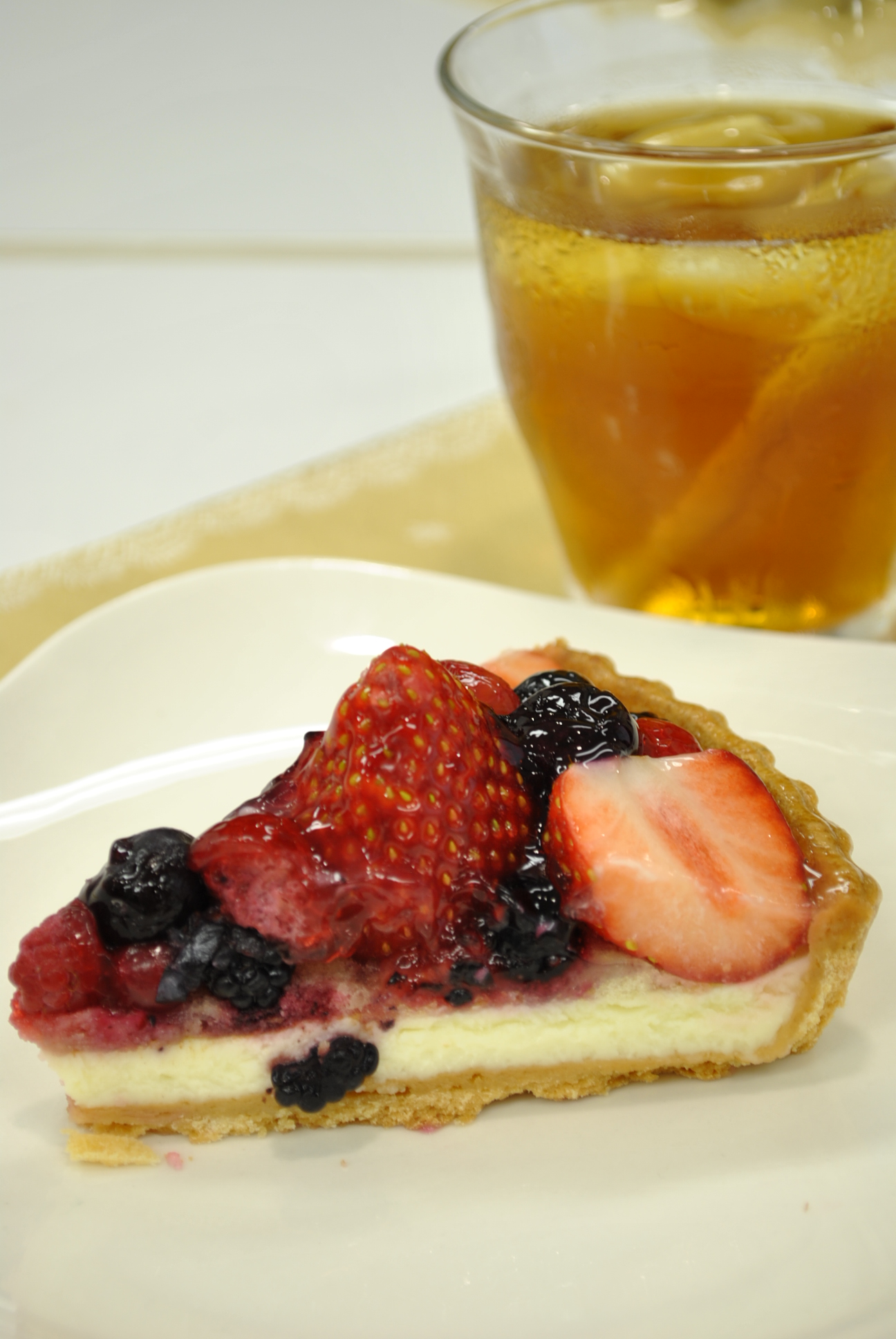 キルフェボンのタルトとドリンクを被写体にして、教えていただきました。