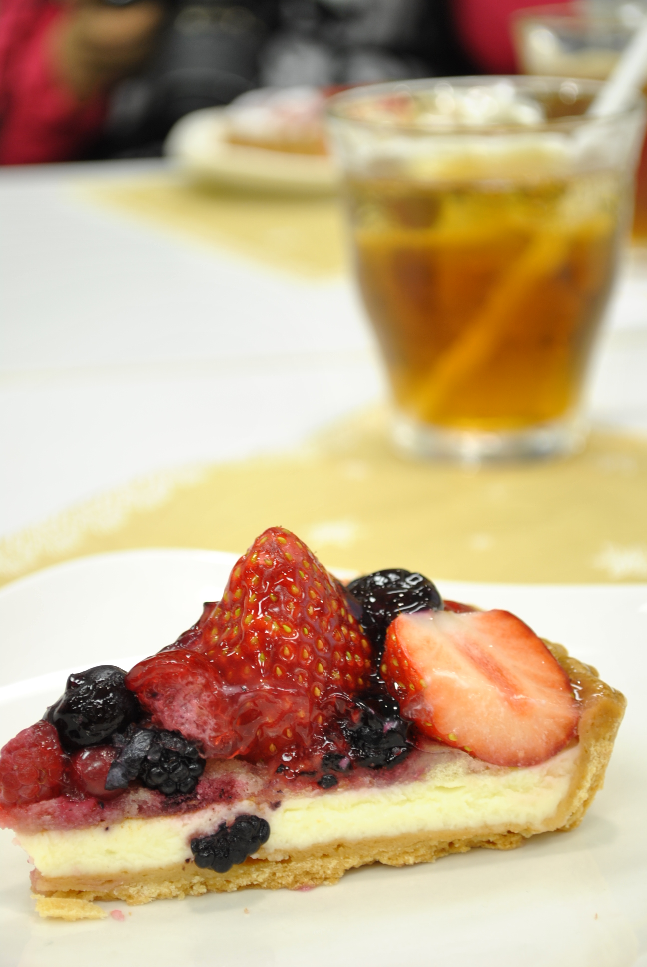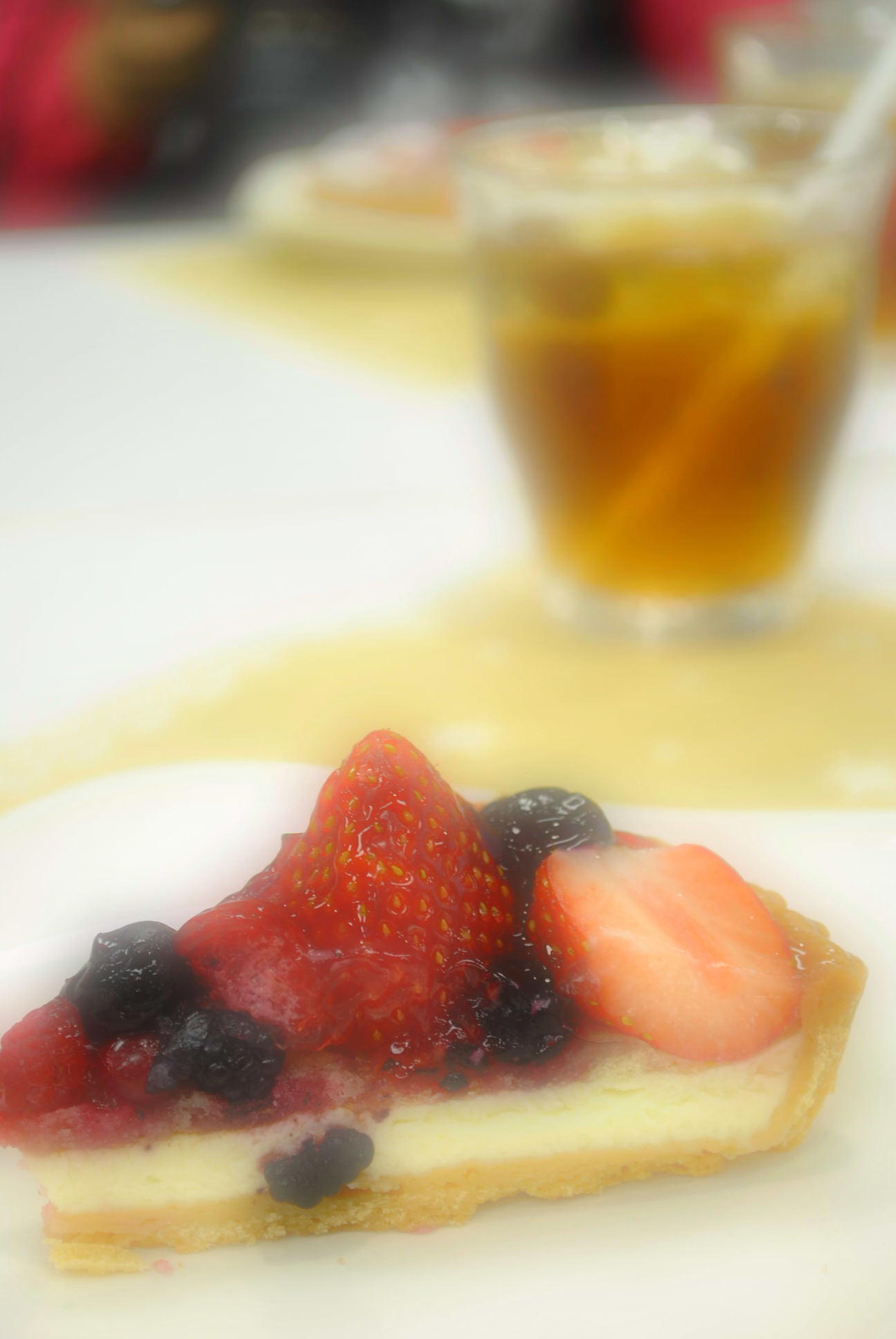 ドリンクをさらに、奥に置いて、奥行きをだすと、もっと、ドリンクにボケみがでて、ケーキはくっきり☆