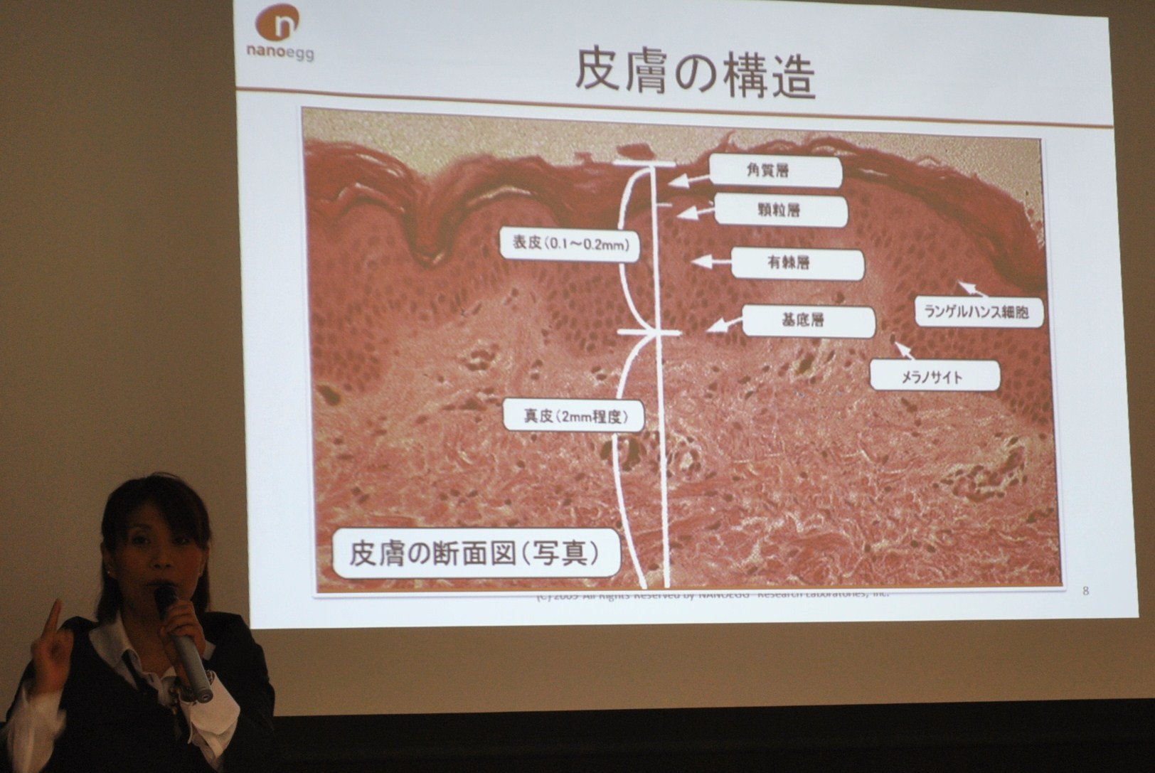 発表会では、株式会社ナノエッグの研究開発本部長であり、なんと、物理学者!の山口葉子さんから