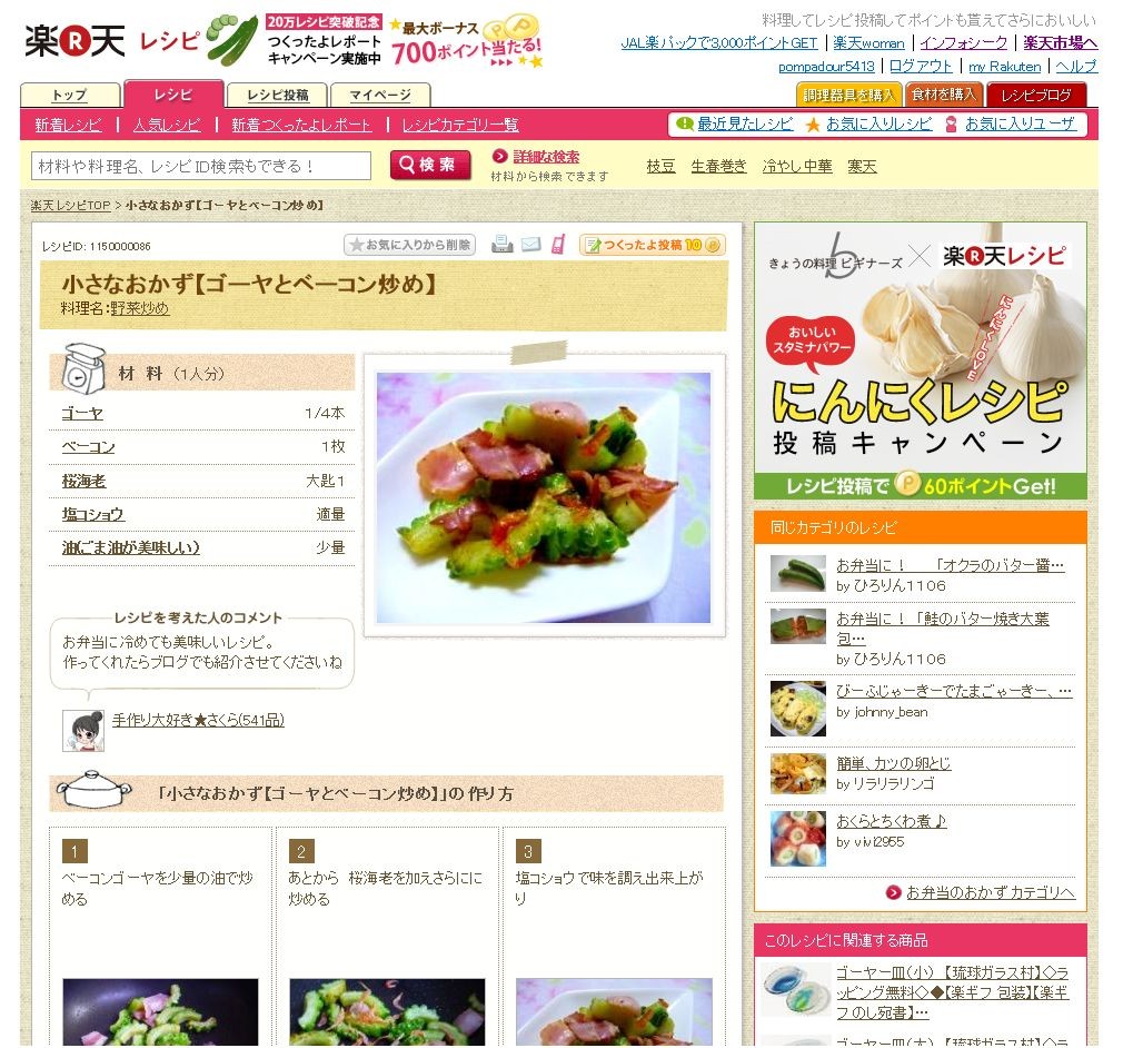 楽天レシピに投稿されたレシピを見て料理を作り、