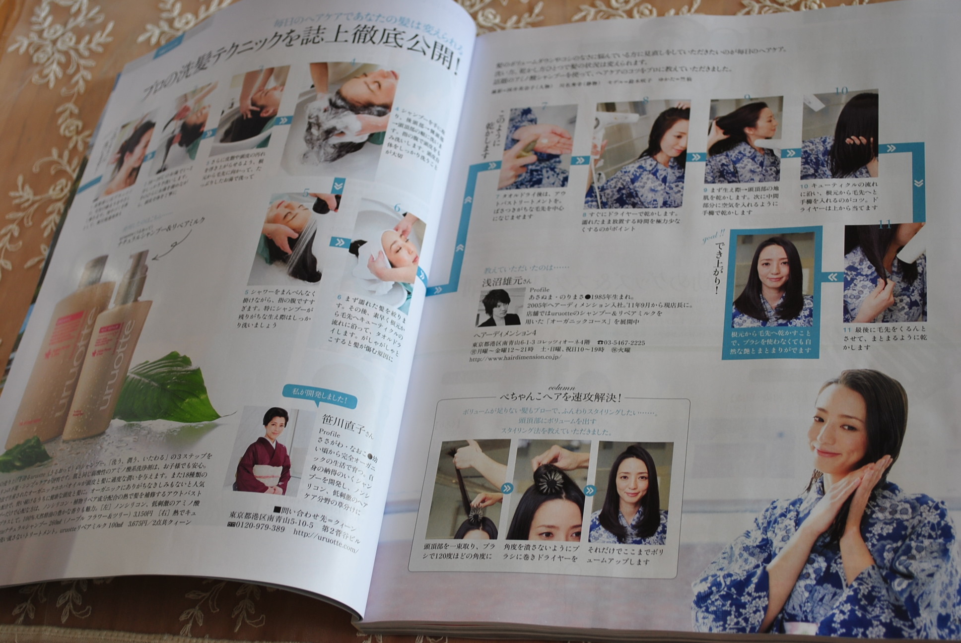 美しいキモノには、表参道のトップサロン「ヘアディメンション4」の浅沼雄元店長が「プロの洗髪&ブローテクニック」を誌上徹底公開する超保存版なのです。