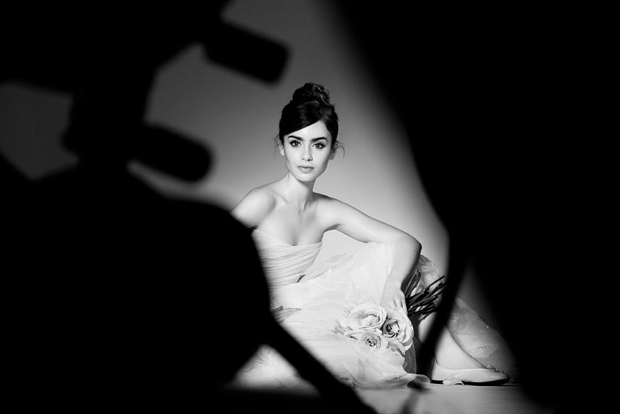 オードリー・ヘップバーンをほうふつさせるような見ためをもつリリー・コリンズは、フレンチバレリーナにインスピレーションを受けた2014年1月発売のスプリングコレクション「サテンローズ(Satin Rose)」からミューズを務めます。