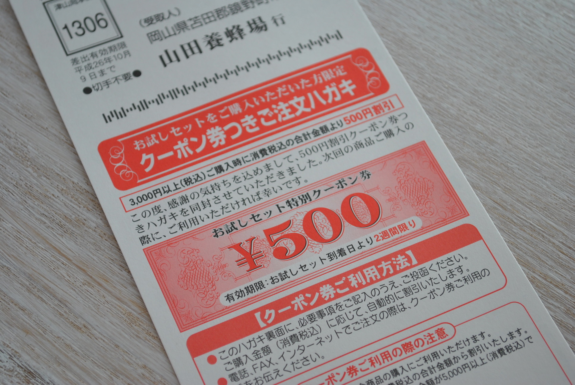 お試しセット購入者限定の割引券も付いていました。
