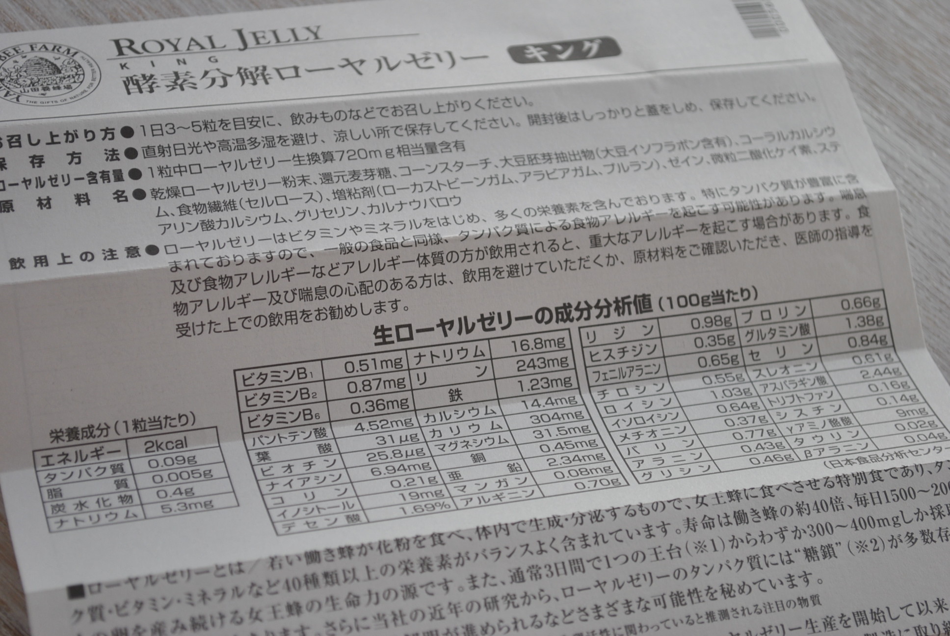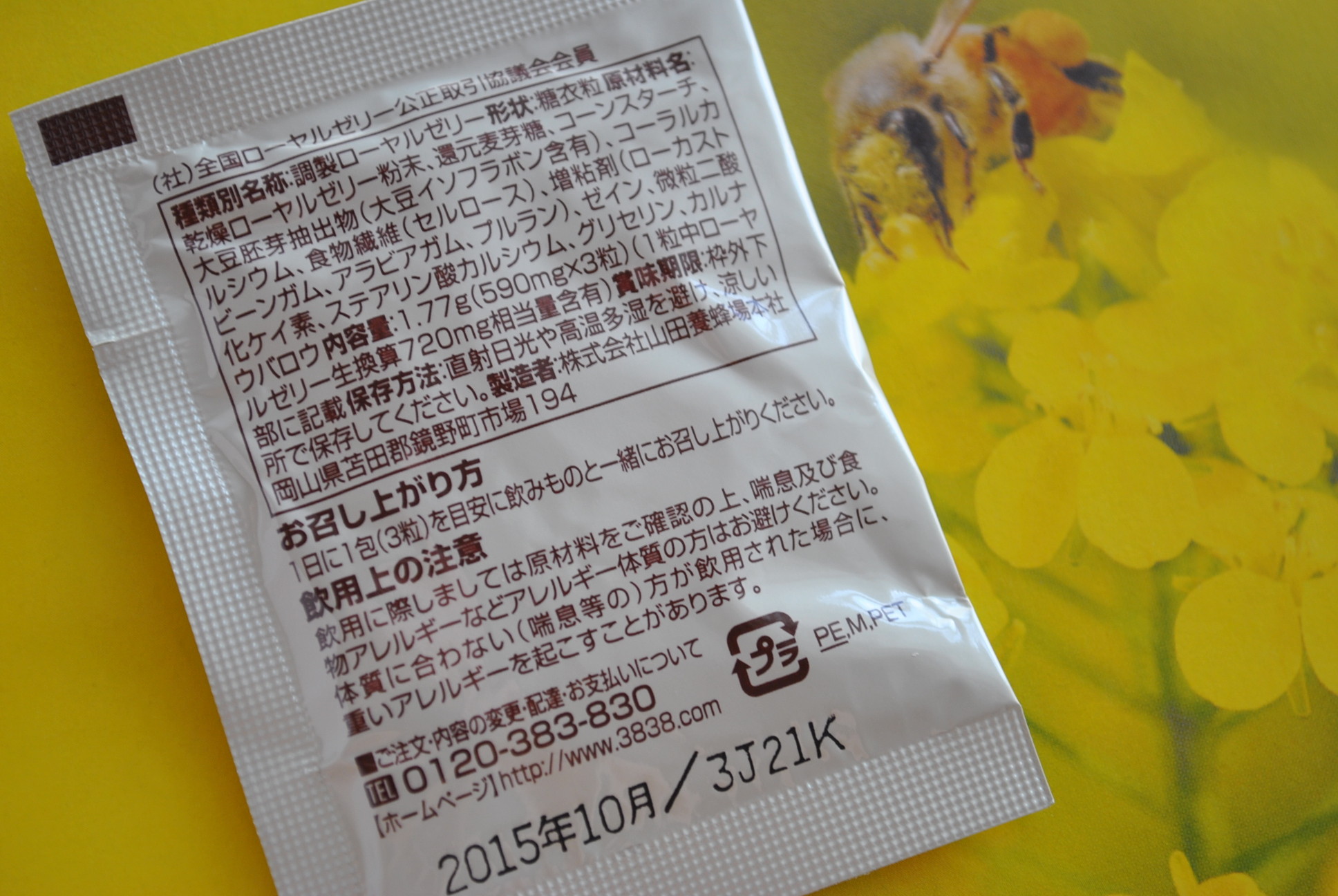 一番初めに、ローヤルゼリー(乾燥ローヤルゼリー粉末)が配合されていて、値段の割に、良心的だと思う。(ローヤルゼリーって、一般的に、お値段もいいですよね。)