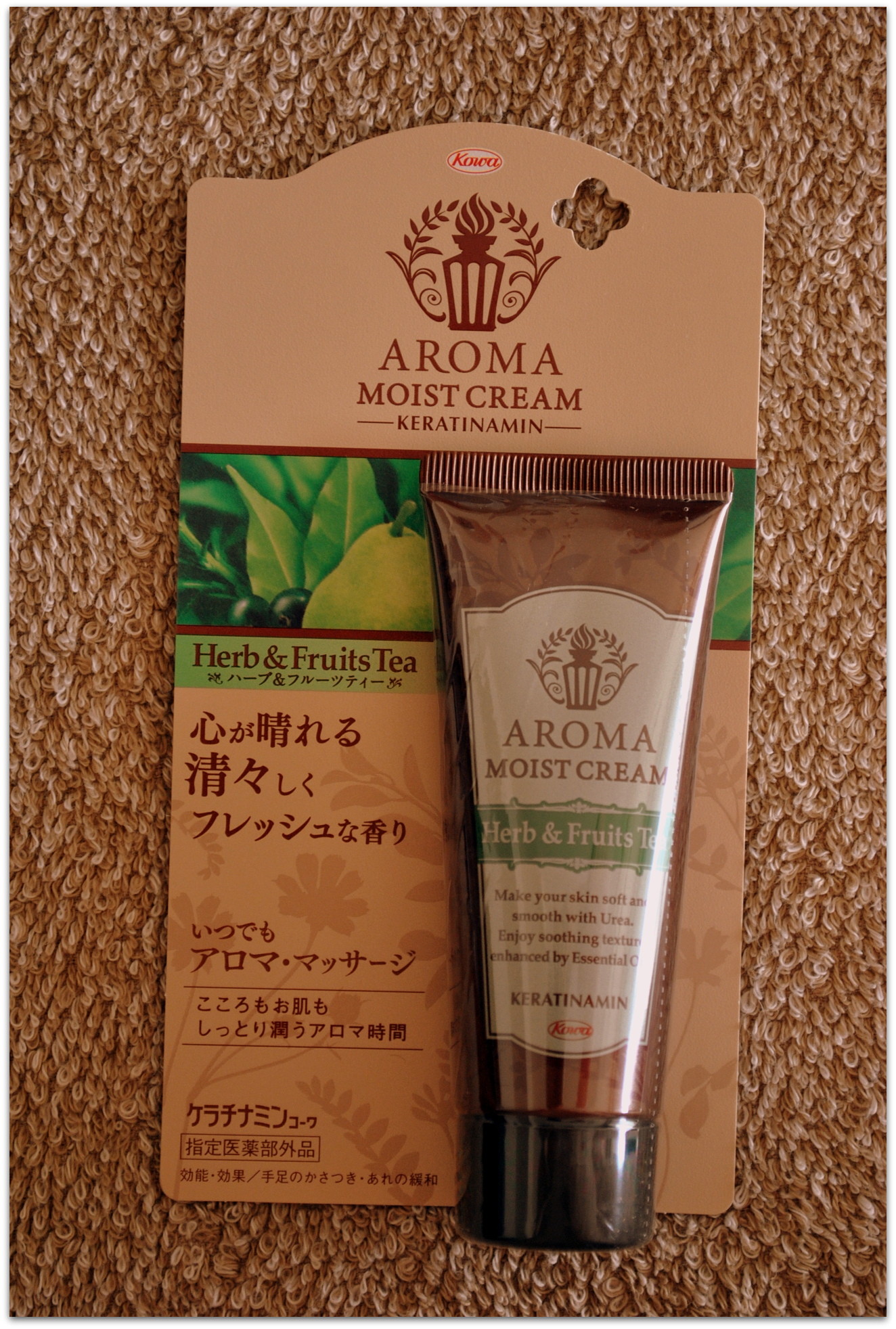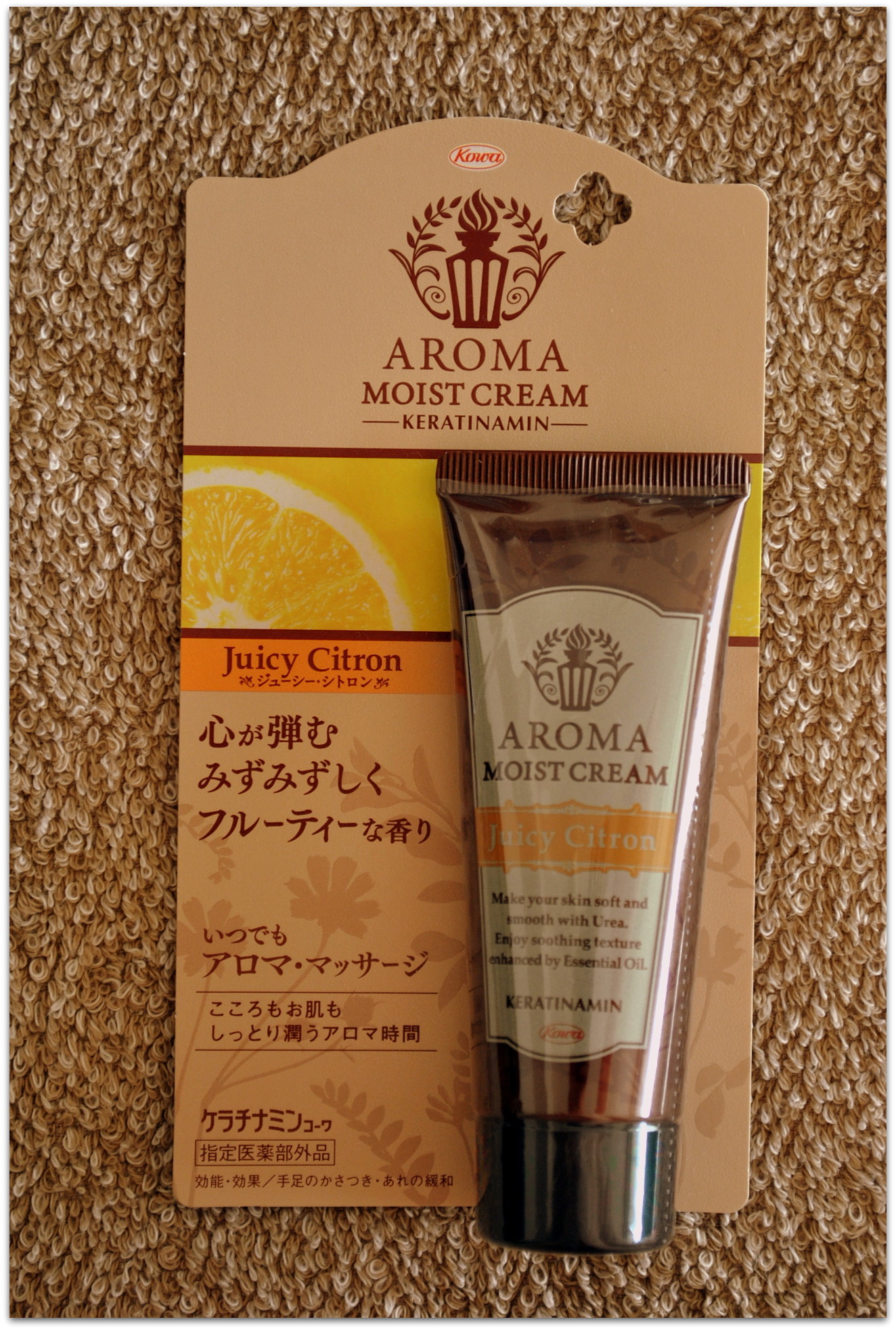 香りと保湿力が特徴のハンドクリーム アロマモイストクリームをモニタープレゼントいただきました。尿素配合のハンドクリーム ケラチナミンで有名な興和様から頂きました。