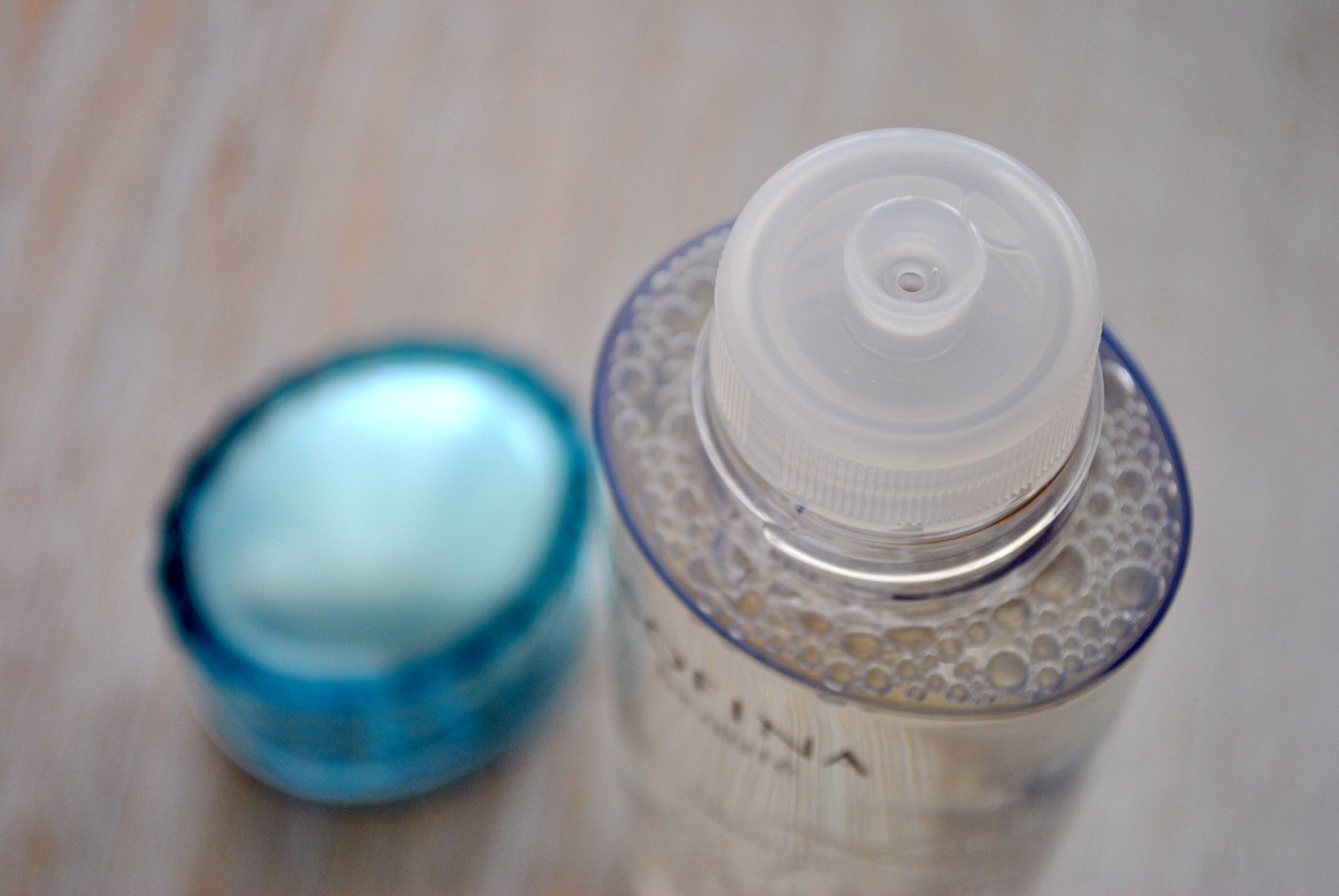 化粧水のボトルは持ちやすい楕円形。キャップも、開けやすいし、閉めると、カチンと小気味よく閉まります。