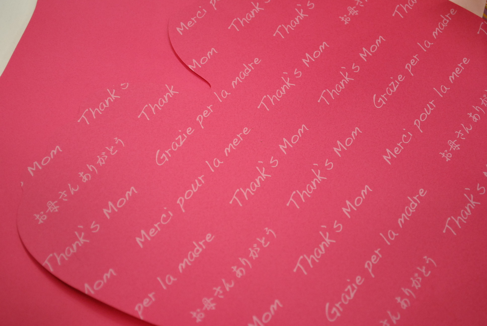 これ、ラッピングを開くと、「お母さんありがとう」をいろんな国の言葉で書いてあるんです。