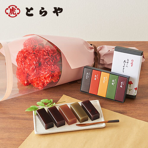 【日比谷花壇】母の日 とらや「小形羊羹5本入」と花束のセット