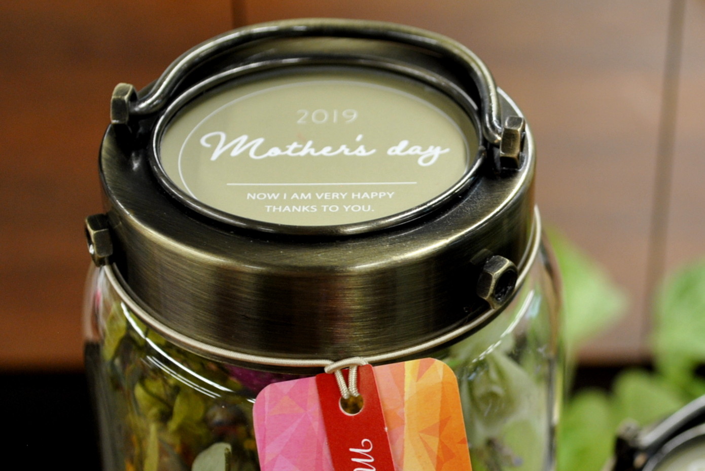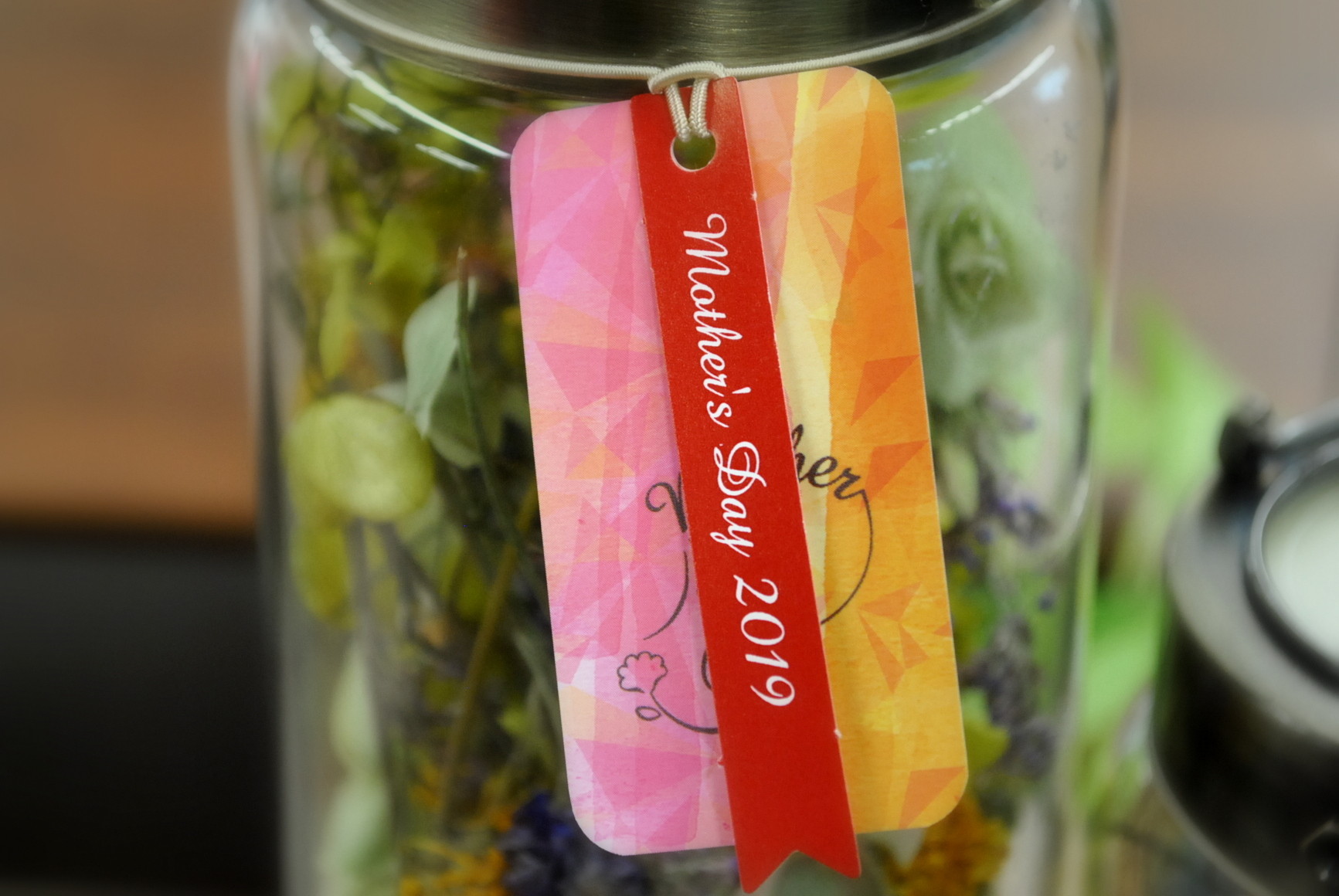母の日のヒーリングボトルは、母の日専用のパッケージ&タグ付きで届きます。
