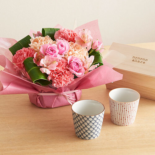 【日比谷花壇】母の日父の日を一緒に贈る「アレンジメントとペアそばちょこ」セット