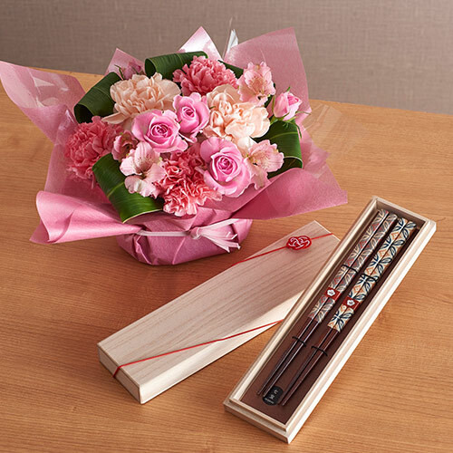 【日比谷花壇】母の日父の日を一緒に贈る「アレンジメントとペアお箸」セット