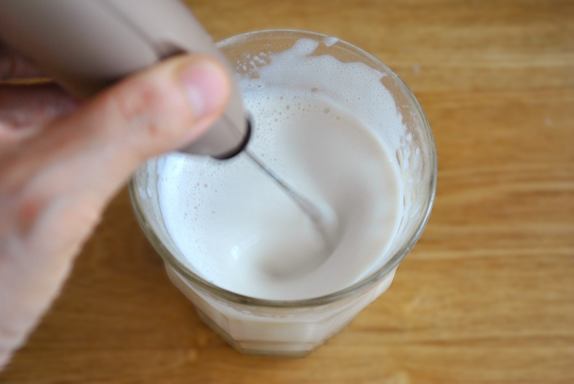 温めて、ミルクフォーマーで泡立てると、アーモンドのいい香りが広がります。