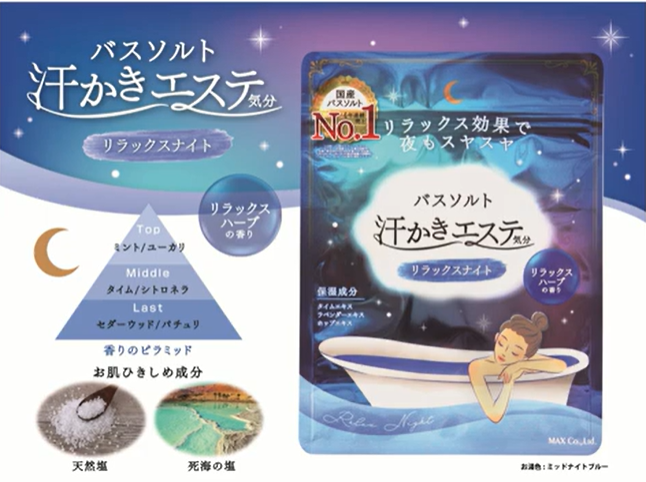 サンプル百貨店さんのRSP109thで、マックスさんのバスソルト 汗かきエステ気分シリーズで1番人気のリラックスナイトをご紹介いただきました。