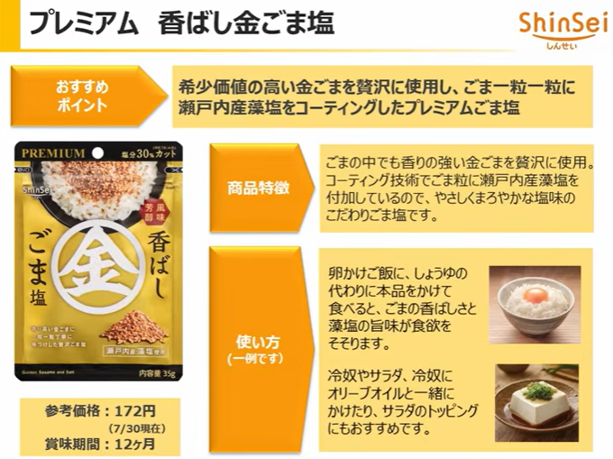 サンプル百貨店さんのRSP110で、真誠さんのプレミアム香ばし金ごま塩を、ご紹介いただきました。