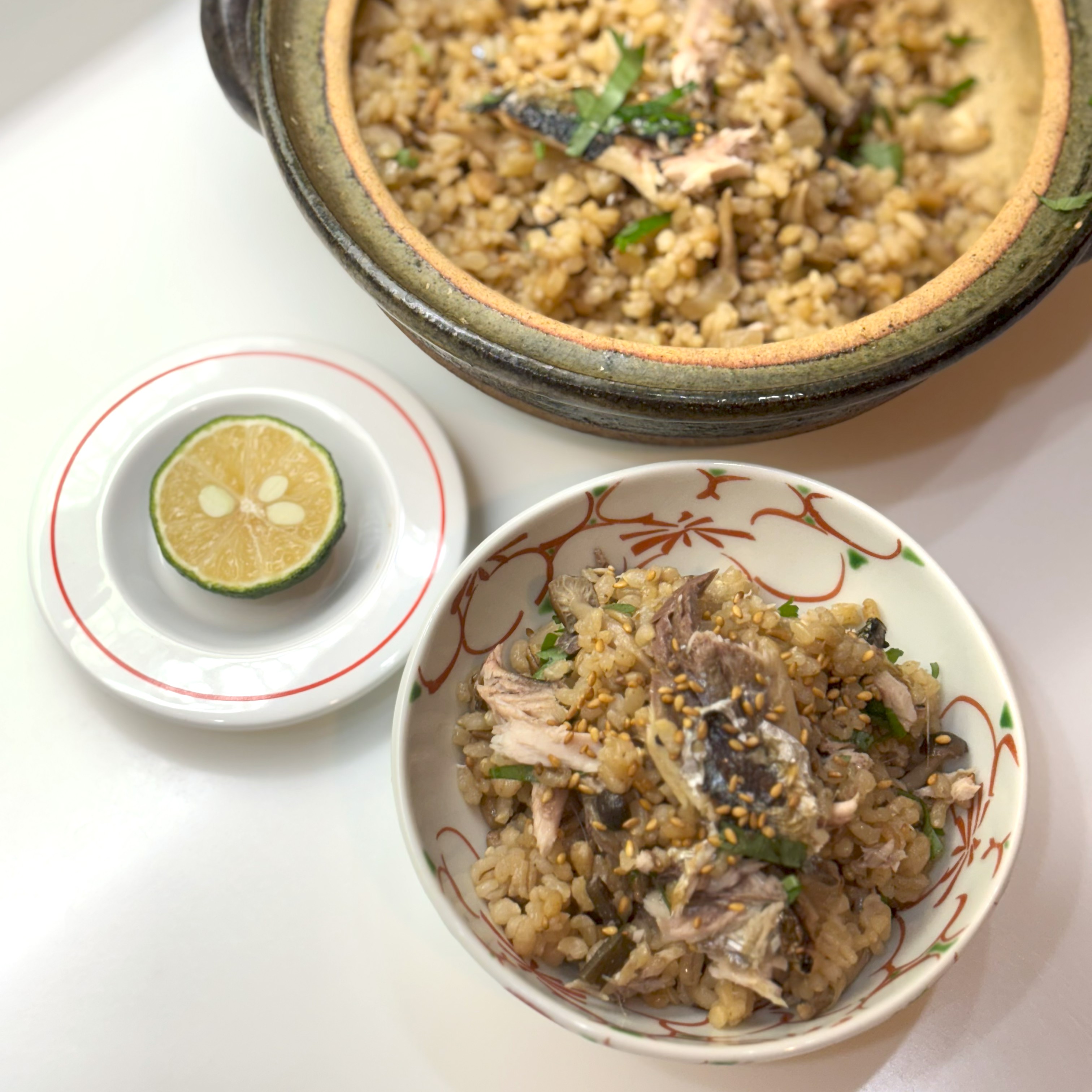 賛否両論の笠原将弘さんの秋刀魚の炊き込みご飯やさんまの塩焼きがすごく美味しそうだったので、作り、香ばし金ごま塩で味変して楽しみました。
