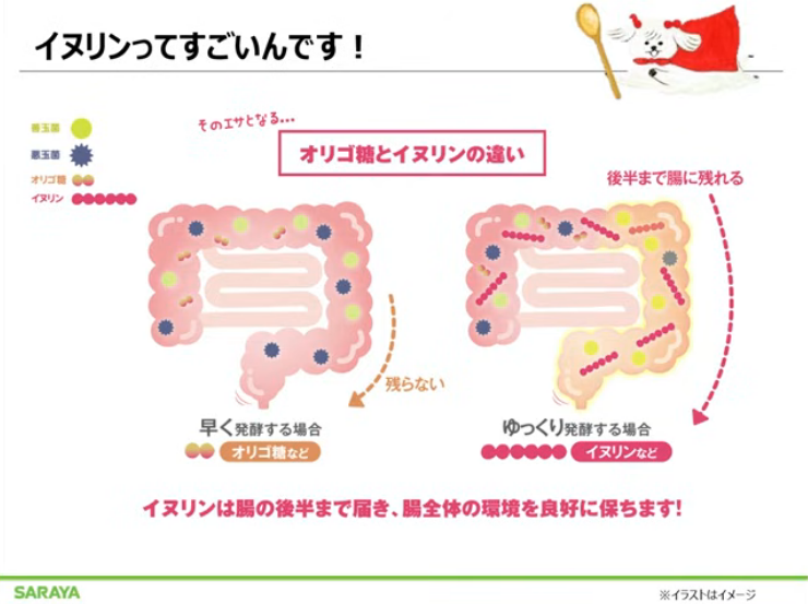 善玉菌の餌になるオリゴ糖は、有名ですが、イヌリンも善玉菌の餌になります。